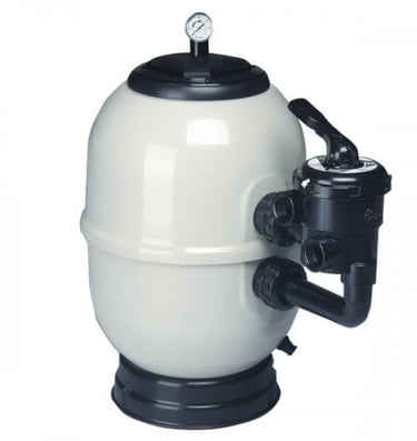 Le principe du filtre à sable est de faire traverser à l'eau de la piscine un volume de sable avec une granulométrie fine (environ 0.55mm), le passage à travers ce média filtrant retiendra les particules.