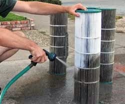 Le nettoyage des filtre à cartouche s'effectue manuellement à l'aide d'une brosse ou d'un jet lorsque le débit de la filtration est trop réduit. Il est conseillé de faire tremper ses cartouche tous les 2/3 lavage afin de la dé-colmater.