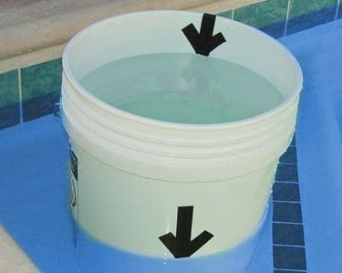 - remplissez un sceau au 4/5 avec l'eau de la piscine